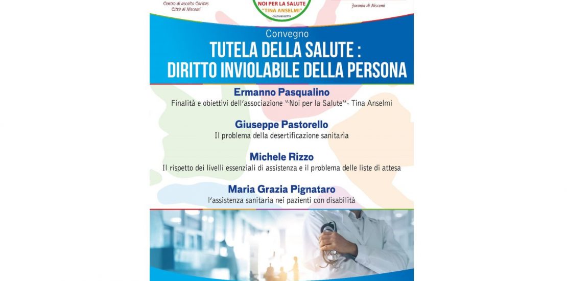 Convegno: Tutela della Salute Diritto Inviolabile della persona Novembre 11, 2024 Posted by: Noi Per La Salute Categoria: Noi per la salute Nessun commento Lascia un commento Annulla risposta post a comment Carta dei servizi Hai trovato difficoltoso, per Te o per i Tuoi Cari, trovare una soluzione con il Servizio Sanitario Regionale ? Contattaci Sportelli di Ascolto Attivi Scopri di più