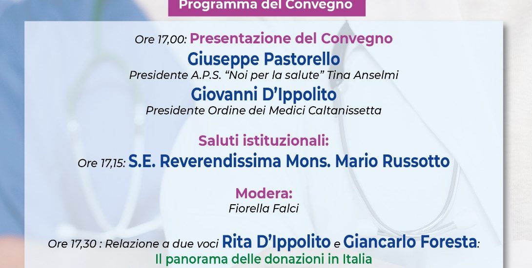 Il dono della vita oltre il confine del corpo: a Caltanissetta un convegno su etica, diritto e comunicazione Febbraio 23, 2026 Posted by: webmaster-creative Categoria: Noi per la salute Nessun commento Lascia un commento Annulla risposta post a comment Carta dei servizi Hai trovato difficoltoso, per Te o per i Tuoi Cari, trovare una soluzione con il Servizio Sanitario Regionale ? Contattaci Sportelli di Ascolto Attivi Scopri di più